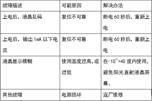 本產品具有傳感器失效診斷和過量程保護的功能,當壓力傳感器沒有可靠的連接在電路上的時候,儀表能自動診斷到該狀態,并且在液晶顯示屏上給出“Err”字樣,此時環路電流為3mA以下。此狀態一直維持,直到傳感器重新可靠的工作。