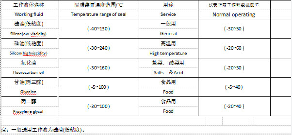 關于隔膜壓力表填充工作液的選擇 Options for filling working fluid